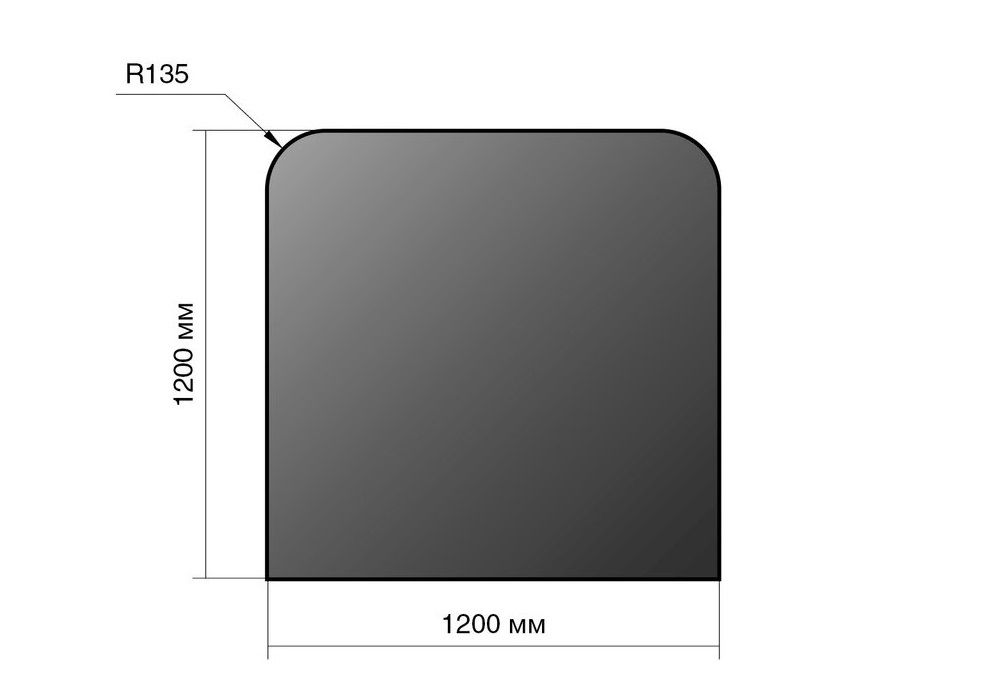 Стальной напольный лист под печь для защиты пола от случайных углей. Форма листа прямоугольная с загруглёнными углами с передней стороны. Лист под печь модели G9 имеет следующие размеры, мм: Ширина 1200; Глубина 1200;