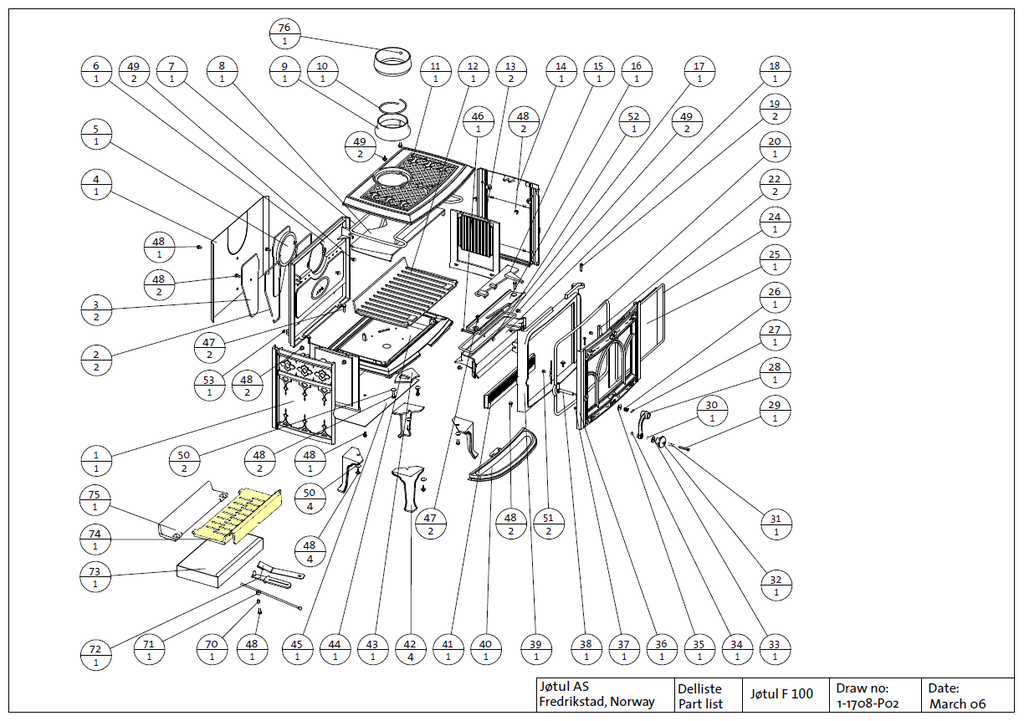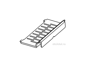 Данная деталь имеет сразу два назначения. Она служит колосниковой решёткой, через которую просыпается зола и пепел в нижний ящик. Также внутреннее дно имеет такую форму, что одновременно является ограничителем для дров от падения на стекло печи. Деталь вставляется в другую часть являющуюся дном. Она откидывается к задней стенке печи, когда из под неё нужно достать ящик с пеплом.